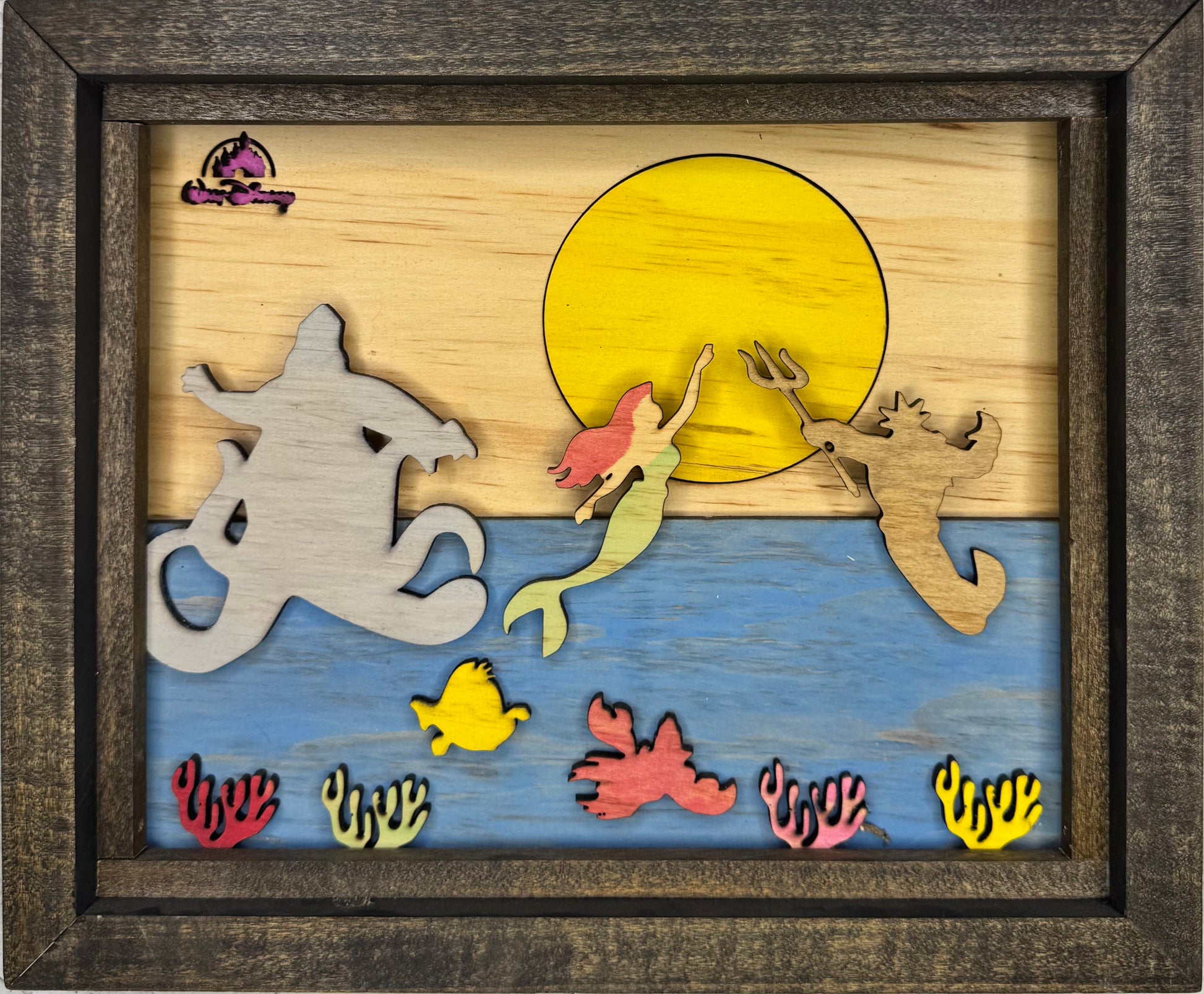 Little mermaid inspired scenery. It is a shadowbox that’s 10 x 12 perfect for a little girl’s room.
